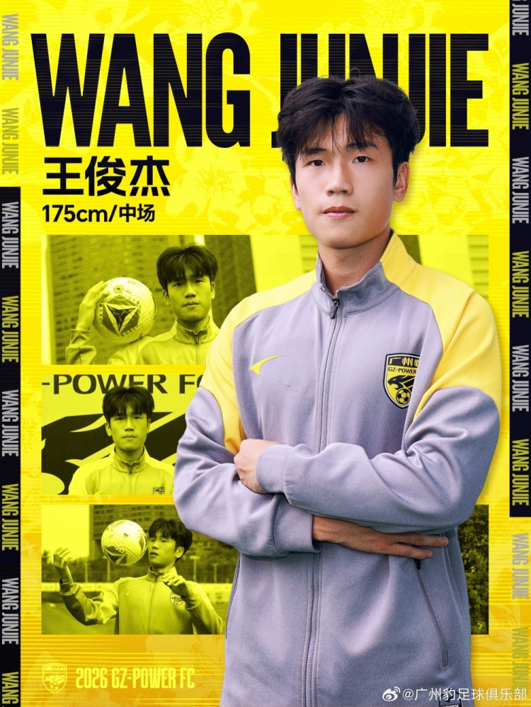 3月3日讯 中甲联赛球队广东广州豹官方宣布,球员王俊杰租借加盟。王俊杰出生于2005年,是一名中场球员。他此前效力于浙江队,曾是浙江U20全运队的队长。